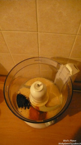B) Aggiunto dei nostri integratori Herbes de la Santè Nes Formula, Couleur Naturelle New Formula, Bird's Probiotics Plus, di uovo sodo o a frittata, un cucchiaino di olio di girasole, un cucchiaino di miele, costituisce la base ideale per il pasto umido. Tutti i componenti devono essere inseriti in un Mixer freddi e miscelati per max 10 secondi, far riposare 2 minuti e ri-